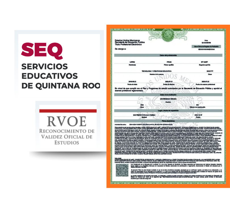 Obtén una titulación oficial con validez ante la Secretaría de Educación de Quintana Roo (SEQ), garantizando que tus estudios en la Universidad James Gosling cuentan con reconocimiento oficial y respaldo académico.